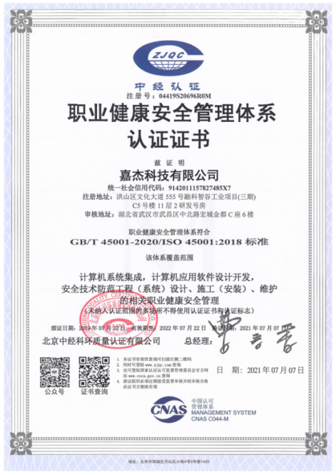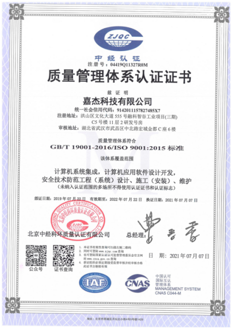 嘉杰安防綜合管理系統V1.0 (2016SR137500)