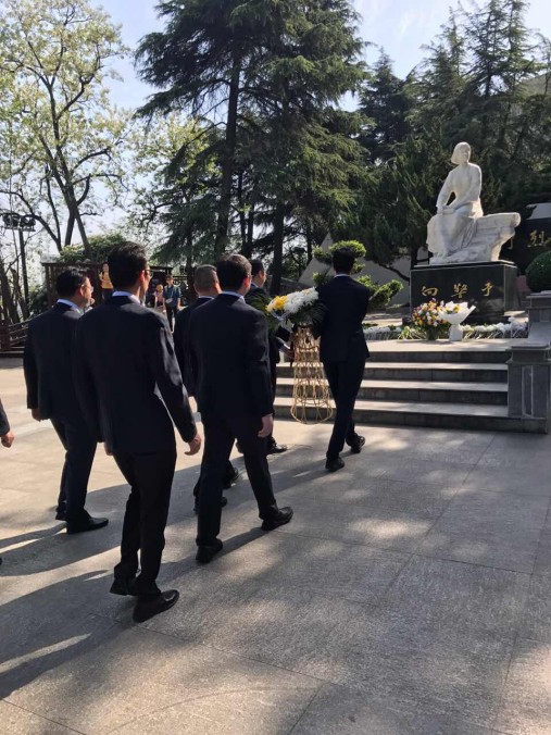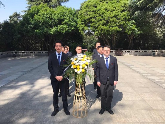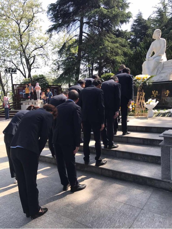 早上9:00到達向警予烈士陵園,整座陵園依山傍水,綠樹環繞,莊嚴肅穆。全體黨員干部依次上前鞠躬、敬獻花籃,靜靜瞻仰烈士紀念碑。