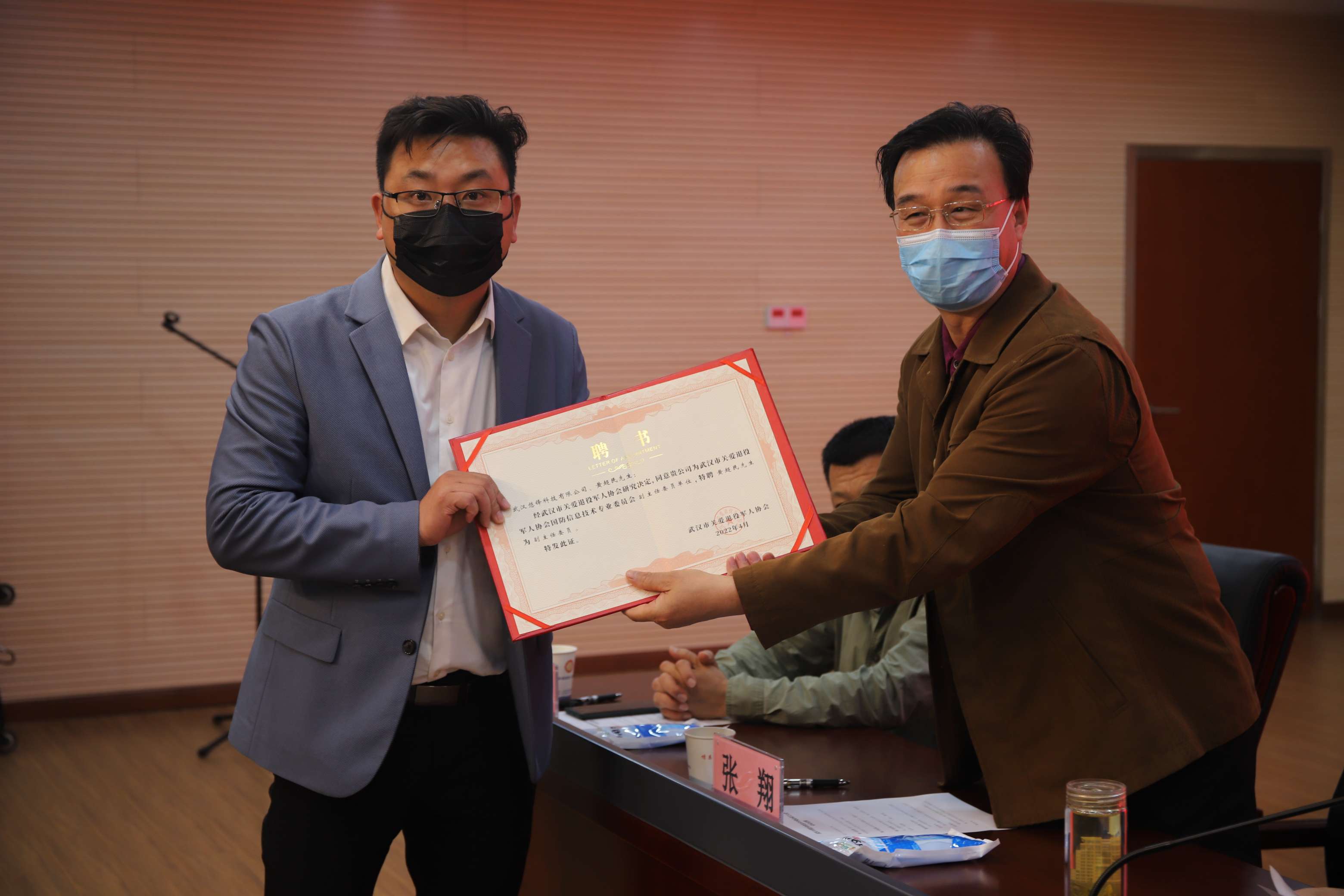 武漢市委原常委、武漢警備區原政委徐宗元,湖北武警總隊政治部原副主任張翔大校,通信指揮學院袁文海大校,原廣州軍區通信四總站主任謝慶前大校分別為大家頒發聘任證書。