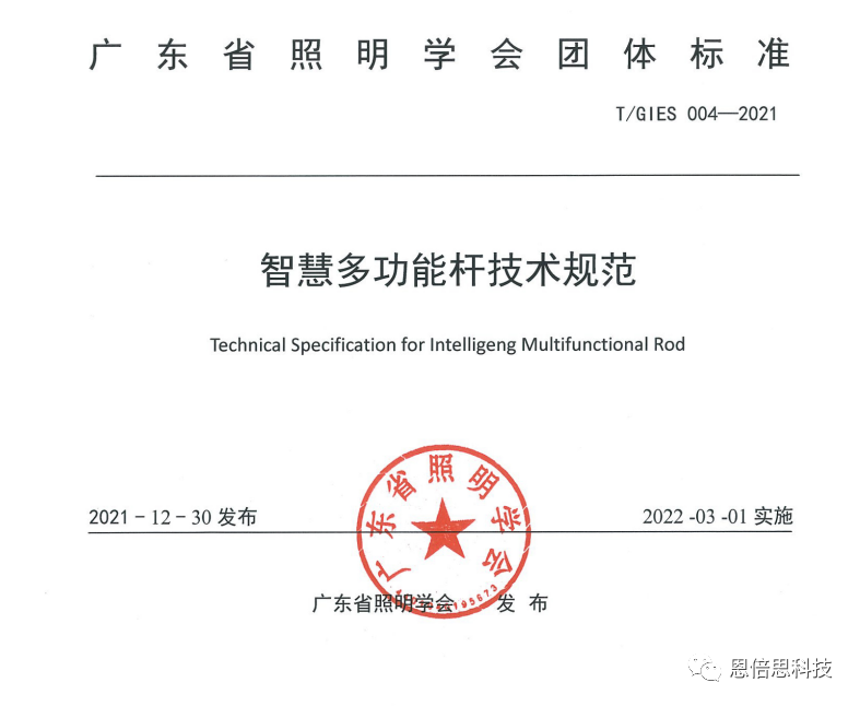 恩倍思參編《智慧多功能桿技術規范》發布實施,助力智慧桿行業標準化建設