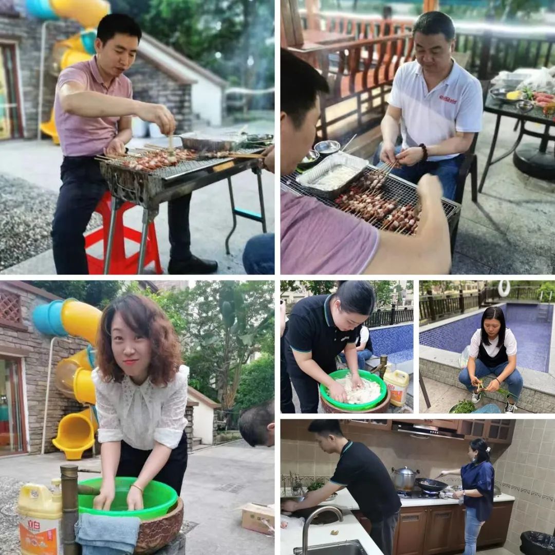 這次團建的重頭戲——燒烤的食材已全部到齊,按分組領取食材后,各小組就在組長的帶領下忙活起來了,分菜、洗菜、切菜剁肉、串簽等,大家井井有條做好分工,特別是男同事們,專業與勤勞并存,積極主動的承擔起組里的各項事務,最后在大家共同的努力下,開始享用自己做成的美食!