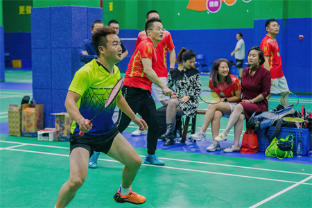 ? ? ? ? 冠名儀式后,與湖北省貴州商會舉行羽毛球友誼賽。本次比賽分為六輪,分別是兩組男雙、兩組混雙、一組女雙和一組男單比賽。