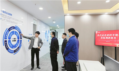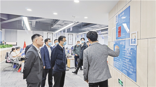 集團董事長胡榮陽對家鄉(xiāng)領導的蒞臨表示熱烈歡迎,并帶領調研組參觀了集團總部的辦公區(qū)和文化區(qū),感受了少博團隊年輕的工作氛圍。