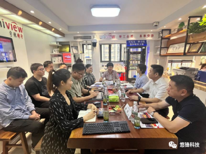 隨后武漢警官職業學院相關系部負責人對悠鋒科技匯報內容及合作展望交換了意見。對雙方后期合作充滿期待。悠鋒科技各部門負責人也對武漢警官職業學院的領導一行到來表示感謝,對武漢職業學院的新的規劃及目標充滿期待。目前在悠鋒科技就業的武漢警官職業學院畢業也參與了交流,先后發表工作感言及感受、感謝學院領導與老師能來企業看望學生。學院領導及老師也表示希望畢業生常回校看看,多關注學院發展。