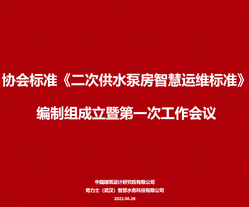 2022年6月28日,由中國建筑設計研究院有限公司&奇力士(武漢)智慧水務科技有限公司為主編的《二次供水泵房智慧運維標準》編制組成立暨第一次工作會議以線上線下相結合的方式召開。