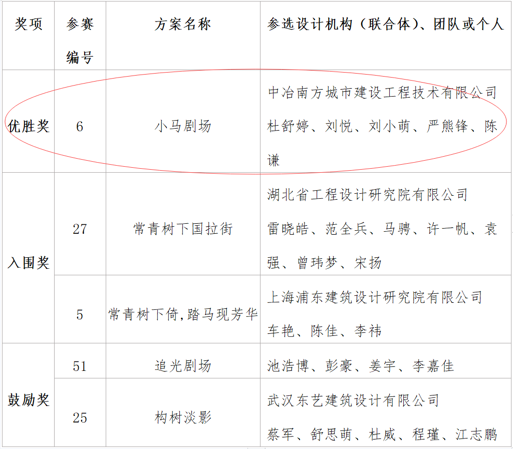 中冶南方城建公司景觀設計團隊創作的“小馬劇場”設計方案從眾多設計院所作品中脫穎而出,摘得桂冠,榮獲唯一的優勝獎,并獲得評委“創意佳、蘊意足,實踐性強”的高度評價。