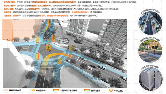 以交通梳理和斷面改造為設計重點,采用完整街道理念,改變“車本位”現狀,對路權進行重新劃分,還路于人。