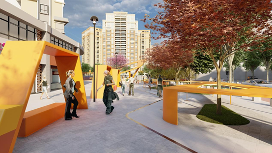 以用地功能及人群使用需求為設計基點,以靈動折線重組狹長空間,以豎向變化展現豐富色彩,展現小馬的充足活力與社區生活煙火氣。