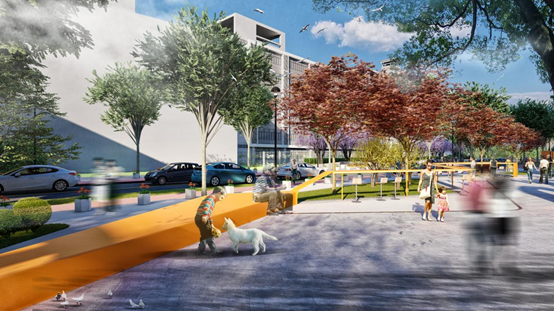 在建校園外側設計連續花池座椅,為學生放學家長接送提供休憩場地。