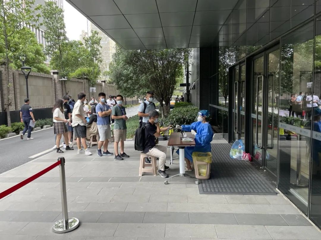 該公司負責大廈運營管理的胡招凡經理告訴長江日報記者,大廈內有一千多人辦公,涉及中冶南方在內的多家企業,所以防疫必須嚴格。胡招凡說,近半個月來,他們和社區對接,每天早上8時開始,都會安排工作人員在大廈入口處為沒來得及在小區(社區)做核酸采樣的員工做采樣,直到11時多才結束。