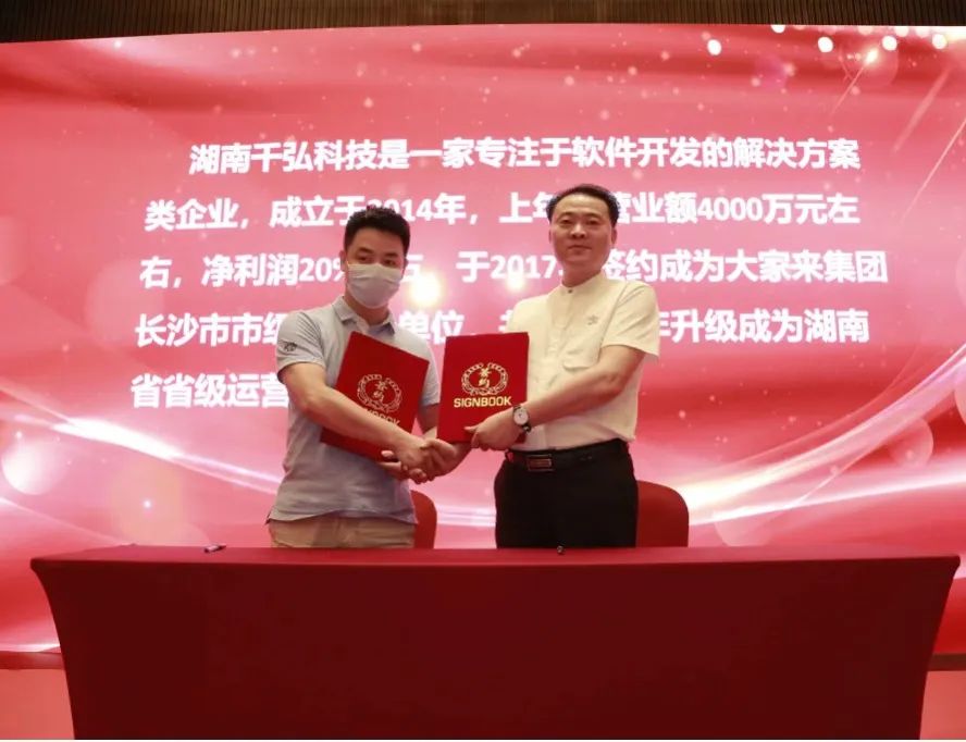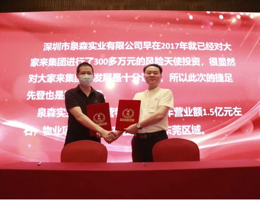 深圳市泉森實業有限公司、湖南千弘科技有限公司、廣東光路通網絡通信科技有限公司與大家來集團進行現場簽約。