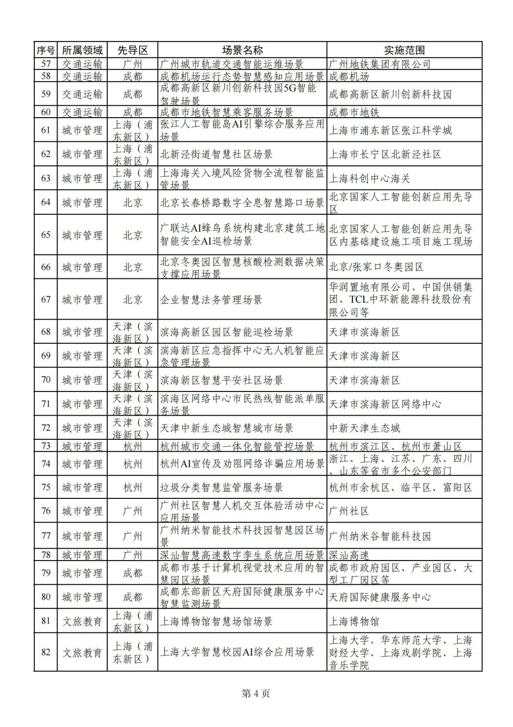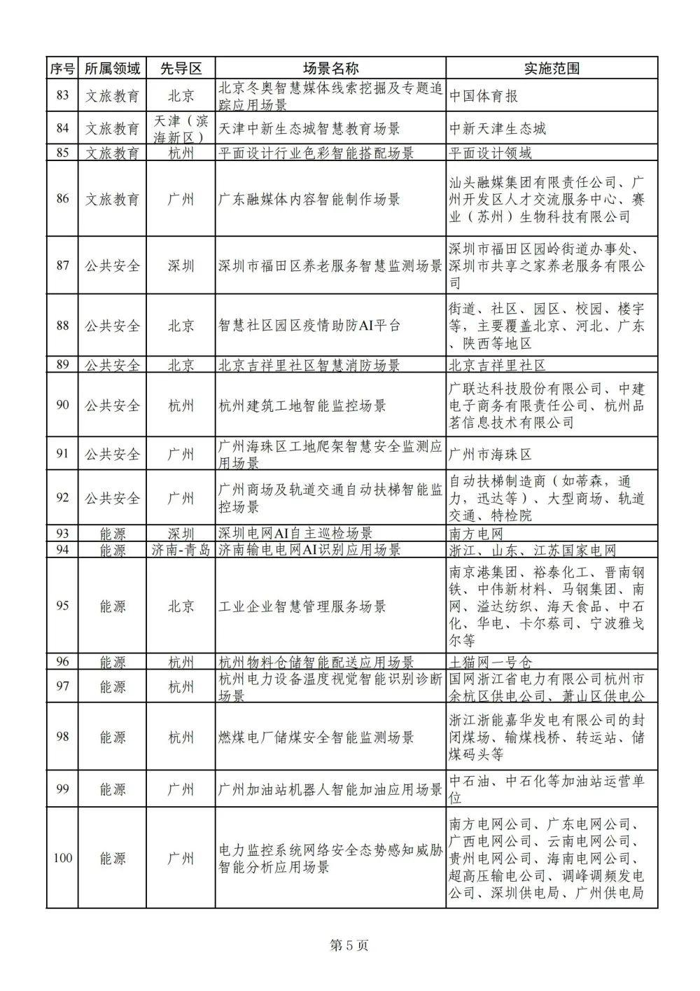 10月10日,工信部公示了國家人工智能創新應用先導區遴選的100個典型應用場景,涉及公共安全、城市管理、制造、醫療健康、文旅教育等行業領域。