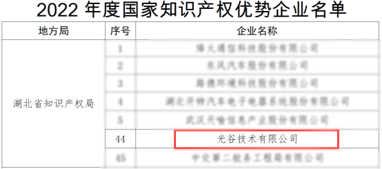 ? ? ? ? 近日,國家知識產權局發布了2022年度國家知識產權優勢企業評定結果,湖北省入圍100家知識產權優勢企業,光谷技術有限公司榜上有名。