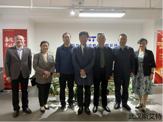 2022年10月14日,丹江口市人大常委會副主任謝志勇、丹江口市政法委副書記李泰文、丹江口市招商中心組副書記蔡平、丹江口市丁家營鎮黨委副書記、鎮長朱志娟、硚口區原區紀委書記蔡海雄、硚口經濟開發區管委會發展一部主管陳立青、硚口區企業家協會秘書長劉艷珍一行到武漢斯艾特科技股份有限公司考察指導工作。