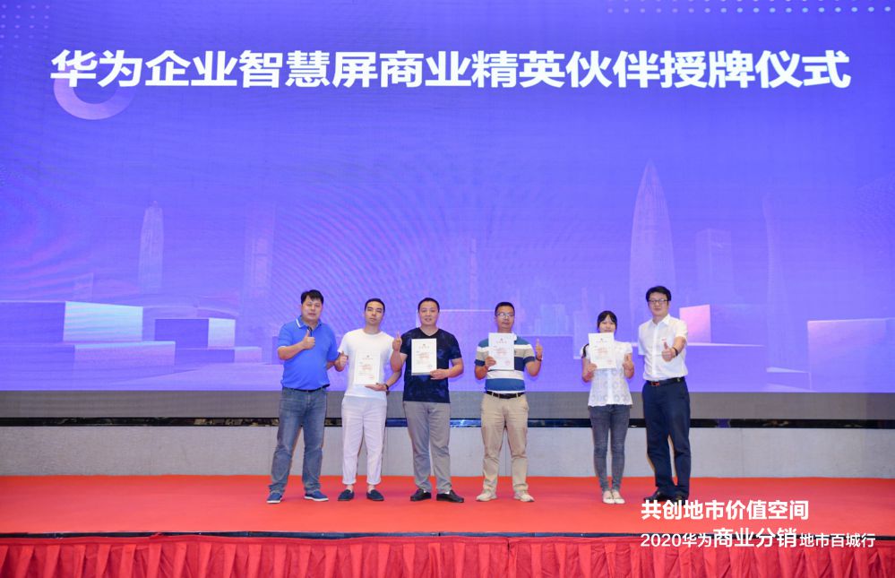 會上還舉行了華為企業智慧屏商業精英伙伴授牌儀式,武漢光磊光源電子有限公司、湖北盛地智能科技股份有限公司、武漢萬隴教育科技有限公司和武漢東智嘉創科技有限公司安排代表接受授牌。