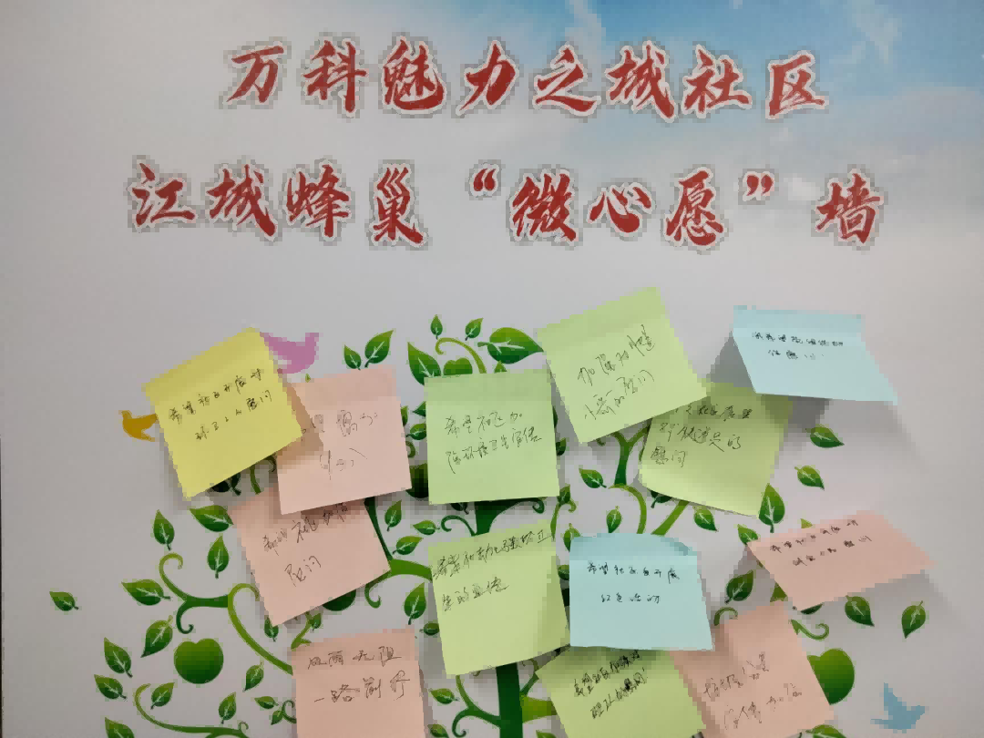 活動前期,黨員代表通過走訪入戶、沿途詢問等方式收集了諸多“小蜜蜂”們的微心愿并張貼于萬科魅力之城社區(qū)江城蜂巢微心愿墻上。