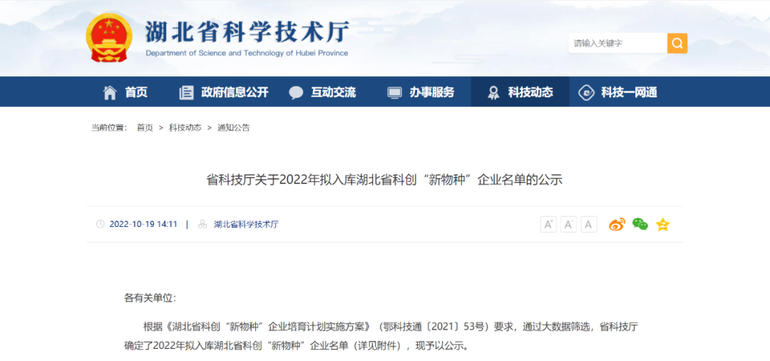近日,湖北省科技廳公示了2022年擬入庫湖北省科創“新物種”企業名單,鳴飛偉業技術有限公司成功入選“瞪羚”企業。