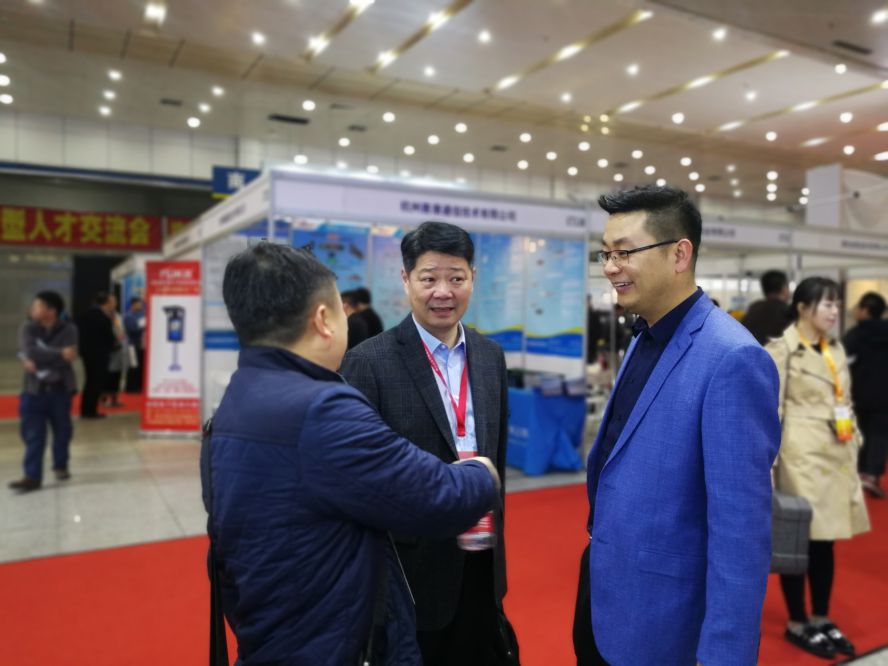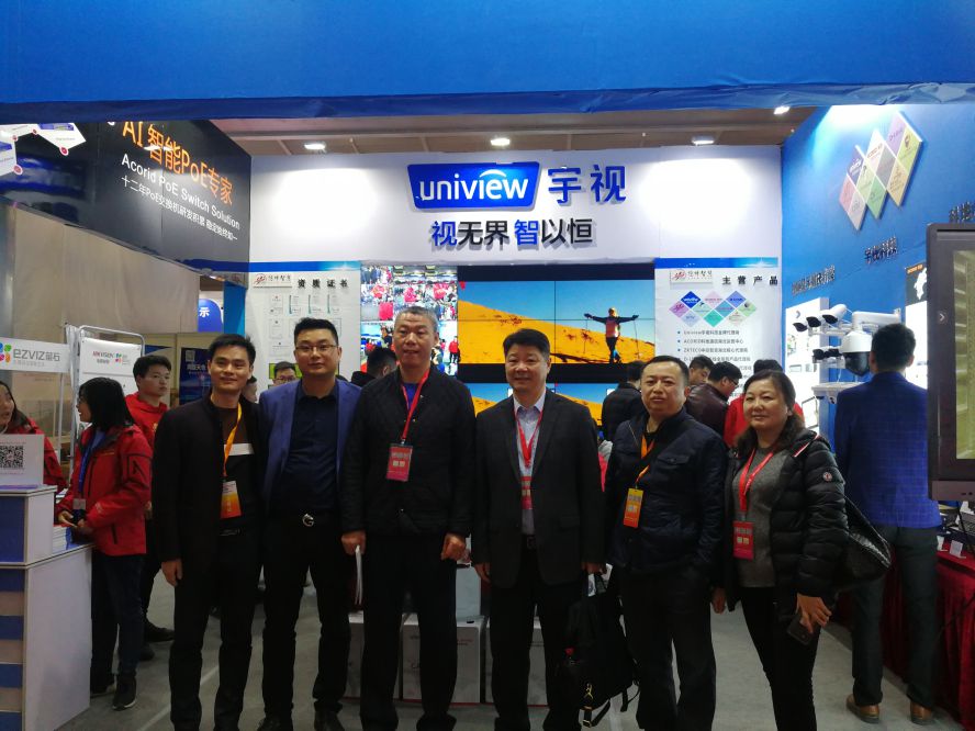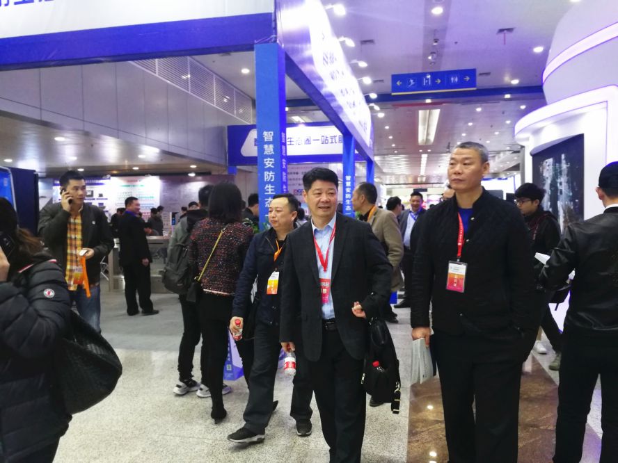 開幕式后,武漢市安全技術(shù)防范行業(yè)協(xié)會秘書長陳虎與協(xié)會副會長胡愛春、羅雋邀請武漢市公安局行管辦主任徐繼弘,一起參觀協(xié)會展位和會員單位展位,進(jìn)行交流。