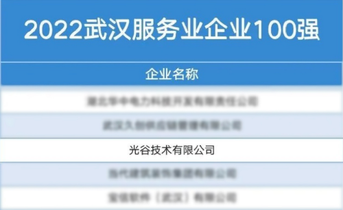 光谷技術入圍武漢服務業企業100強