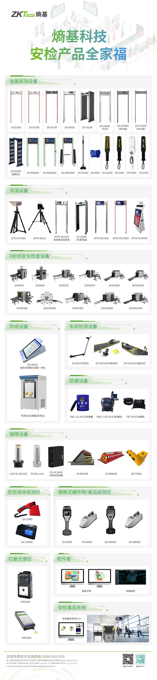 ? ? ? ? 熵基科技擁有金屬探測設備、測溫設備、X射線安全檢查設備、防疫設備、車底檢測設備、防爆設備、路障設備、危險液體探測儀、便攜式爆炸物|毒品探測儀、拉曼光譜儀、軟件類、安檢集成系統等多款智慧安檢產品。