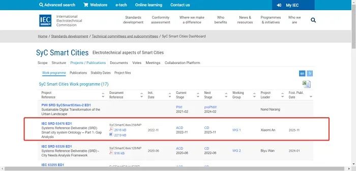2022年11月,由我國牽頭的國際標(biāo)準提案《智慧城市系統(tǒng)本體 第1部分:差距分析》(Systems Reference Deliverable (SRD) Smart city system Ontology -- Part 1:Gap Analysis)通過IEC投票,正式獲批立項,項目號為IEC SRD 63476 ED1。