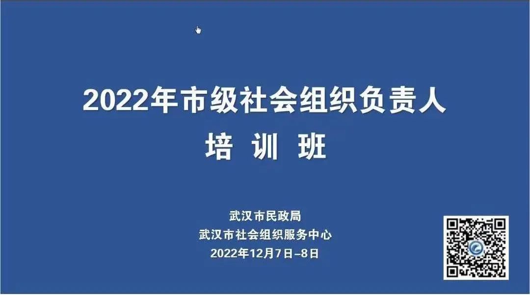 12月7日至8日,2022年市級社會組織負(fù)責(zé)人線上培訓(xùn)班在武漢市社會組織黨建服務(wù)中心成功舉辦。此次培訓(xùn)采取線上授課方式進(jìn)行,市級社會組織會長(副會長)、理事長(副理事長)、秘書長等1424人次參加了培訓(xùn),市社會組織綜合黨委副書記、市民政局社會組織管理和黨建工作處負(fù)責(zé)人出席開班儀式并講話。秘書長陳虎和秘書處主任李彥菁參加了本次線上培訓(xùn)班。
