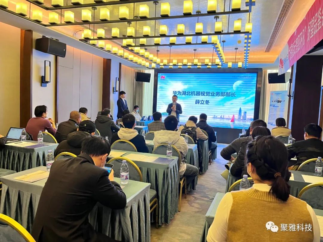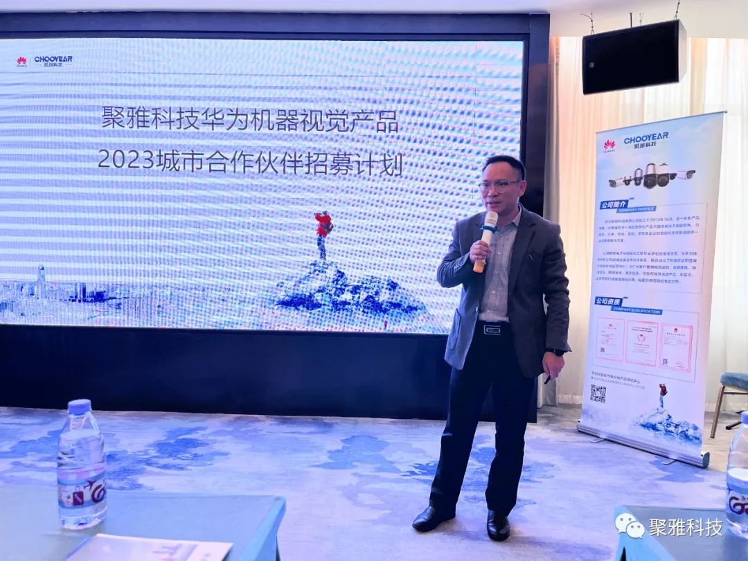 ? ? ? ? 武漢聚雅科技有限公司總經理湯亮著重講解了華為及機器視覺發展愿景,聚雅科技與省級運營中心發展規劃,以及2023年華為機器視覺產品城市合作伙伴招募計劃。