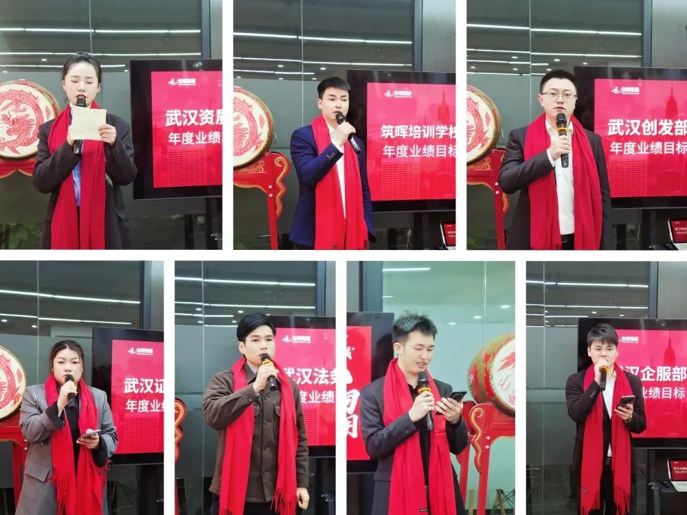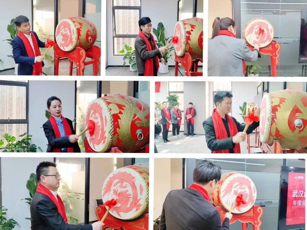 戰鼓疊疊,壯士出征。武漢資質部、企服部、創發部、證書部、法務部、工程部及筑暉培訓學校負責人紛紛上臺擊鼓,在隆隆鼓聲下認領年度目標,并以恢宏氣勢帶領部門喊出專屬口號。“加油”“必勝”“完成目標”響徹整個會場,比鼓聲更加響亮。少博人正以“開局就是決戰,起步就是沖刺”的姿態和決心,搶開局,迎先機,奮力完成新年新指標,為少博高質量發展夯實“穩”的基礎,累積“進”的因素,增添“新”的動能。