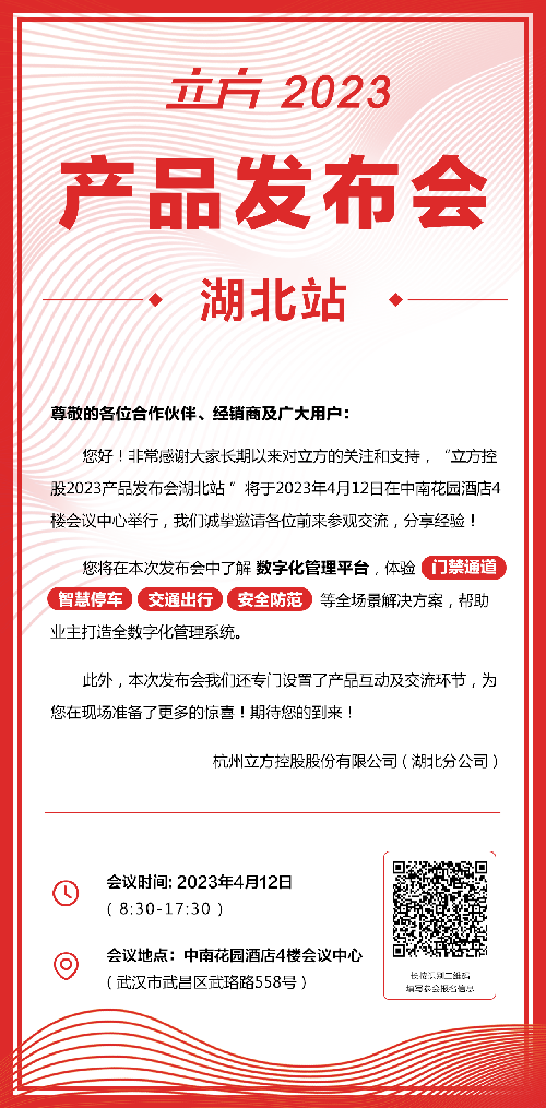“立方控股2023產品發布會湖北站”誠摯邀請各會員單位蒞臨參觀交流!