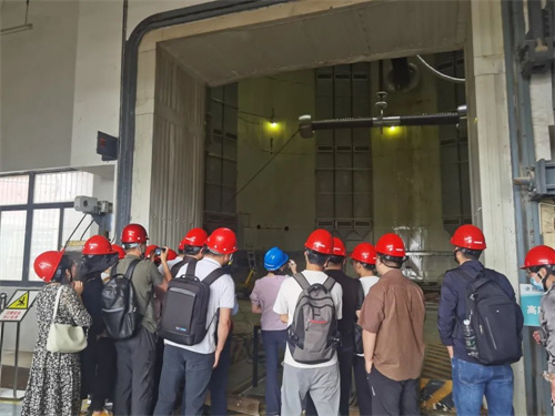 ? ? ? ?工作人員針對高壓輸電電磁環境等熱點問題向大家展開了實驗演示。在現場,我們見到了混凝土罐結構的環境氣候實驗室,見到了擁有7500kv/750kj長波前時間沖擊電壓發生裝置的特高壓戶外沖擊試驗場,見到了像熊貓一樣形狀的輸電塔。大家紛紛在這些壯觀的設施前拍照記錄。通過此次參觀,大家對電力行業有了全新的認識。