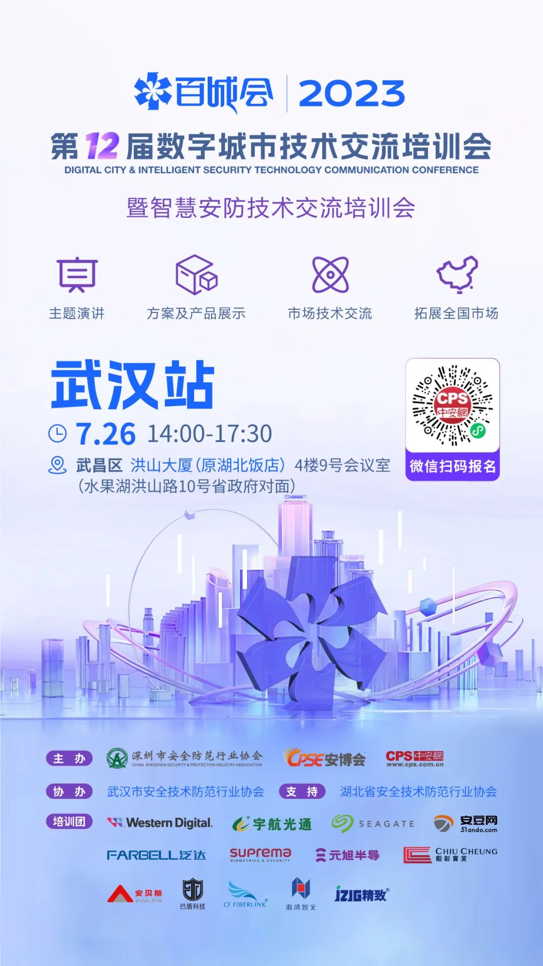 鑒于此,為加快推動當地安防企業進行數字化轉型,積極適應大數據時代信息化發展新趨勢、進一步完善公共安全領域綜合治理。2023年第十二屆數字城市技術交流培訓會暨智慧安防技術交流培訓會(以下簡稱:百城會)將走進武漢。