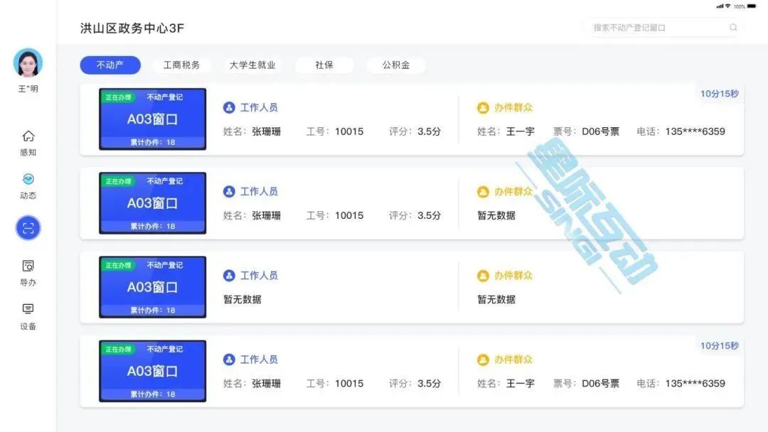 星際互動智能導辦系統以“事項標準化梳理”為基礎,圍繞政務服務事項最小顆粒單元,為辦事群眾提供更簡易、更便捷的導引服務。辦事企業和群眾只需掃描二維碼,即可知曉各事項基本信息、所需材料、辦理流程、辦理進度、咨詢電話和投訴反饋等要素,真正做到一次告知、一目了然,使群眾切實享受到“指尖上的便利”。智能導辦系統兼具口頭語轉換和模糊搜索功能,群眾只需輸入關鍵字即可輕松查找相關事項。系統適配于大廳自助終端、PC終端、移動端,三端聯動使用,為辦事企業和群眾提供多場景應用的精準辦事輔導。星際互動情形感知智能導辦系統從政務中心需求出發,以有用、管用為原則,運用互聯網、大數據、智能化手段,構建方便快捷、公平普惠優質高效的政務服務體系,切實提高企業群眾辦事的滿意度和獲得感。