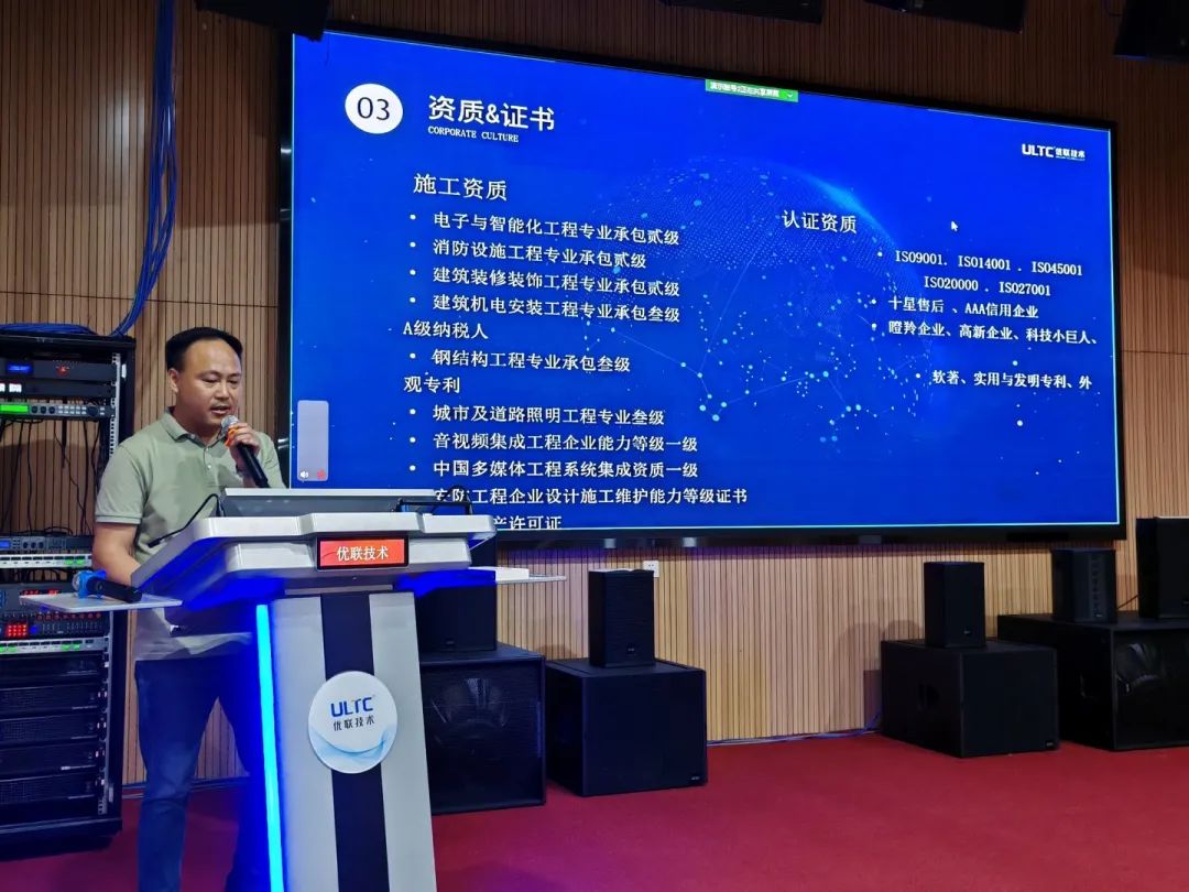優(yōu)聯(lián)技術(shù)是一家專業(yè)從事智能化產(chǎn)品、音視頻產(chǎn)品研發(fā)、生產(chǎn)、銷售為一體的綜合性高新技術(shù)企業(yè),公司主營產(chǎn)品及一體化綜合性方案廣泛服務(wù)于市政、地產(chǎn)、商業(yè)、交通、體育、廣電等領(lǐng)域。公司以科技產(chǎn)品為載體,以信息技術(shù)為根基,開發(fā)出適用于不同場景的智慧物聯(lián)解決方案。為各行業(yè)客戶提供建筑智能化、智能會議、智慧校園、智慧醫(yī)療、智慧展陳、智慧教育、智能場館等智慧解決方案。同時提供展示展覽、數(shù)字化展陳等各種展示領(lǐng)域的綜合性服務(wù),致力于為客戶提供整體策劃、創(chuàng)意設(shè)計、多媒體集成、工程施工及后期維護等綜合展陳解決方案。
