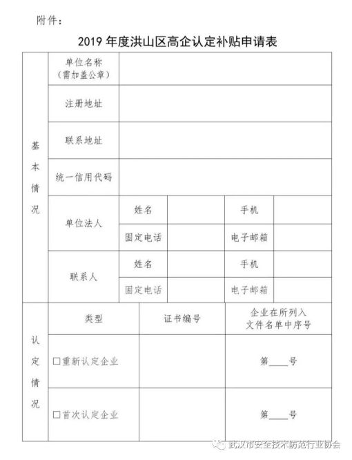 (1)《2019年度洪山區高企認定補貼申請表》(附件);