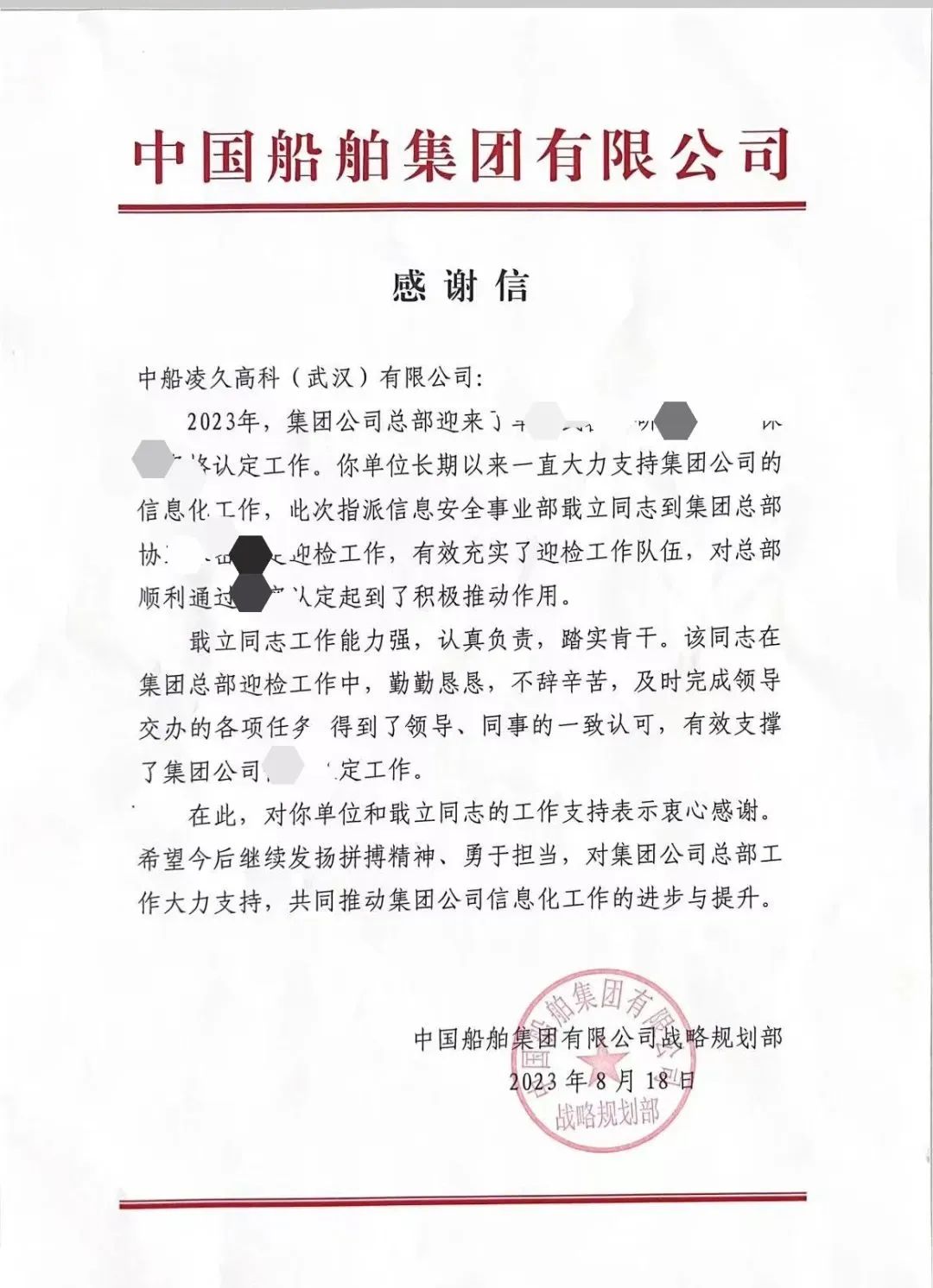 2023年以來,凌久高科承擔著中國船舶集團公司信息安全系統的部署和運維工作,作為信息安全運維人員,戢立同志在運維期間主動作為、高效專業。維保期間,面對突發事件,戢立勇挑重擔,沖鋒在前,憑借過硬的技術本領,為集團公司信息安全系統順利運行提供堅實保障。