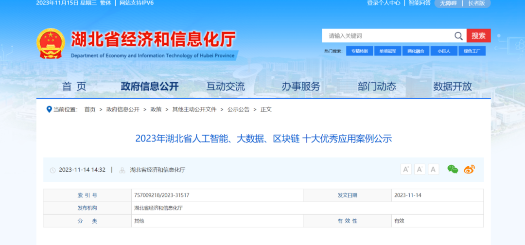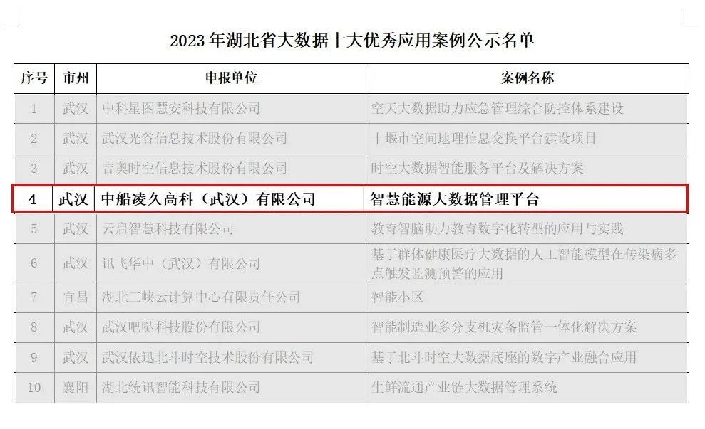 凌久高科獲評“2023年度湖北省大數據十大優秀應用案例”企業