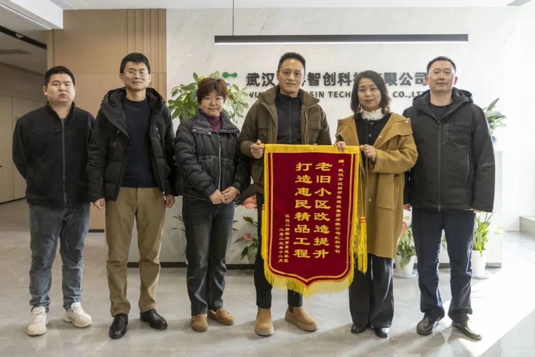 “感謝你們為我們社區安裝的智能化設備,極大方便了社區居民的日常生活。”12月27日上午,江漢二橋街道知音東苑社區書記黃春萍、社區主任張磊、孫俊,將一面印有“老舊小區改造提升,打造惠民精品工程”的錦旗送到公司。