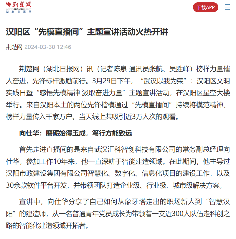 匯科智創常務副總經理向仕華受邀參加漢陽區“先模直播間”主題宣講活動