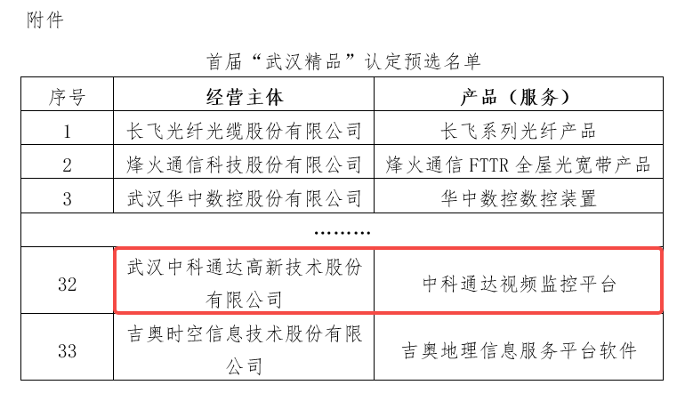 近日,武漢市市場監督管理局公示首屆“武漢精品”認定預選名單,中科通達自主研發的視頻監控平臺成功入選。