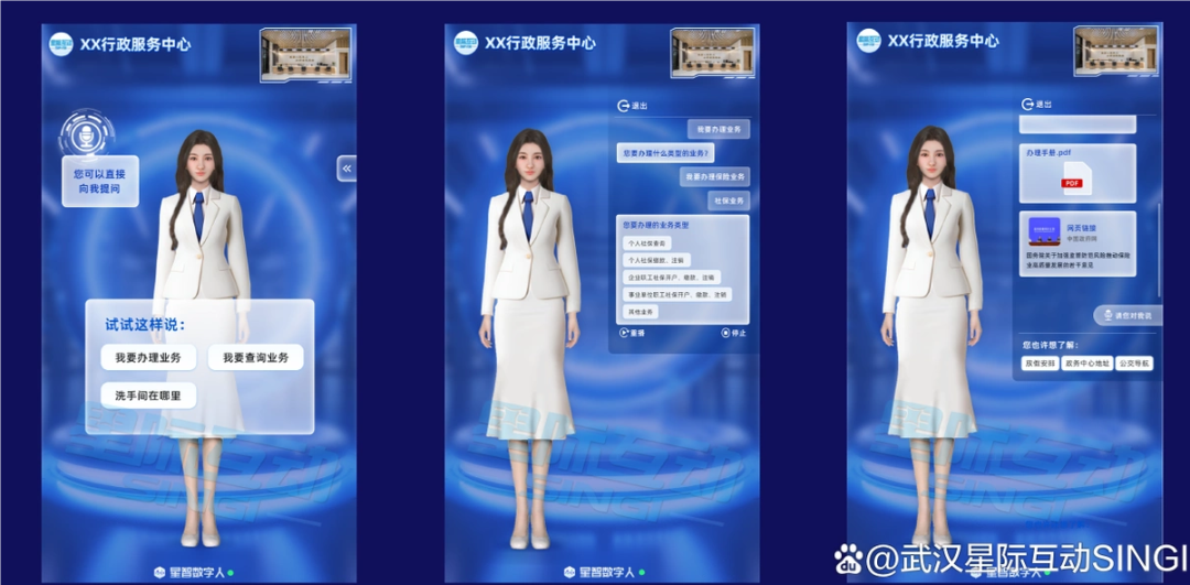 結合智能導辦、智能審批、智能客服等產品,星際互動數字人系列產品實現了政務服務的全場景覆蓋,為“人工智能+政務”的創新應用樹立了標桿,助力政務服務邁向更智能、更高效的新時代。更多咨詢敬請關注星際互動公眾號。
