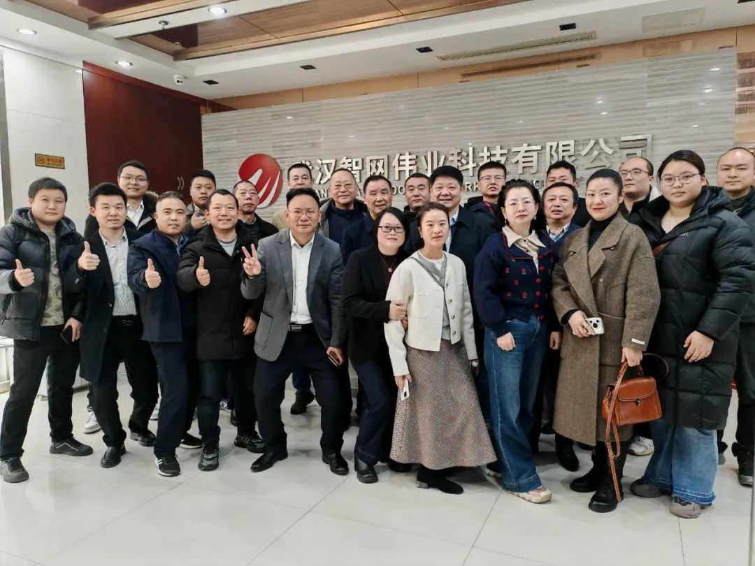 2025年2月27日上午,協會黨支部書記孫健,副會長兼秘書長陳虎,專家委員會主任崔一兵,副主任羅學斌、段晉鄂與會員單位代表共同走進武漢智網偉業科技有限公司。武漢智網偉業科技有限公司董事長王開能、總經理王歡、技術總監鄧云閣、運營部經理胡耀強熱情接待走訪隊伍。