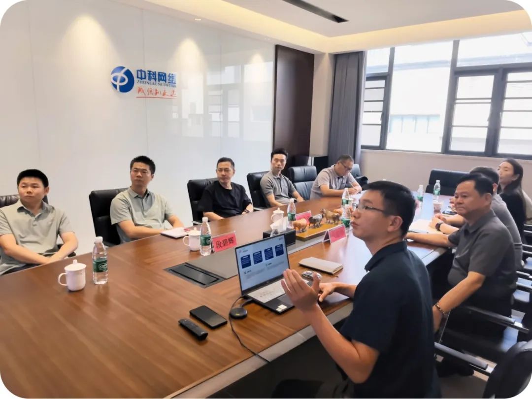 座談會上,中科網絡董事長袁建華及高管團隊熱情接待,并詳細介紹了公司在信息化領域的技術積累與實踐成果,涵蓋信息系統集成、軟件開發、人工智能領域等多個方面。周佳宇主任、汪建平主任對中科網絡的技術實力和創新成果給予了高度評價,并就合作路徑進行了深入探討,明確了后續合作的方向與實施計劃。