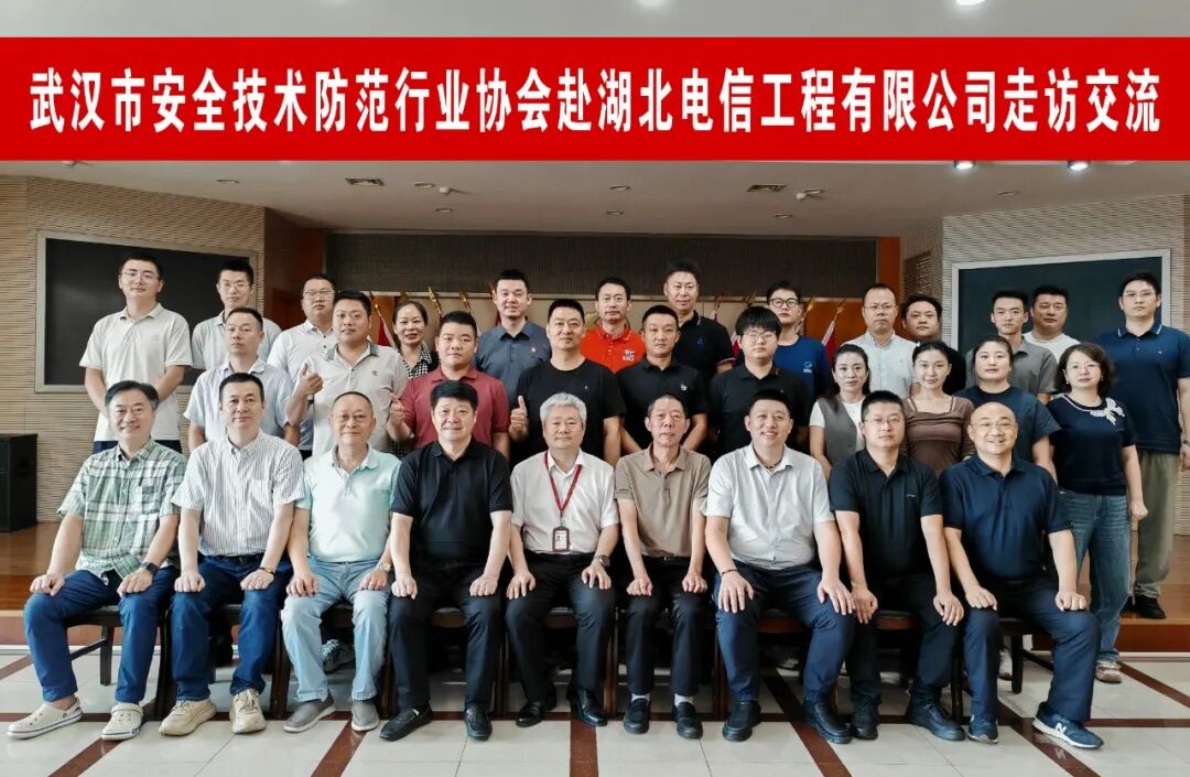 2025年9月16日上午,協會黨支部書記孫健,輪值會長陳虎、何火延,專家委員會主任崔一兵、副主任羅學斌及多家會員單位一同走訪湖北電信工程有限公司。湖北電信工程有限公司市場總監王英雙熱情歡迎走訪隊伍。