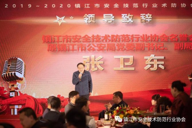 鎮江市安全技術防范行業協會名譽會長、原鎮江市公安局黨委副書記副局長張衛東上臺致辭。