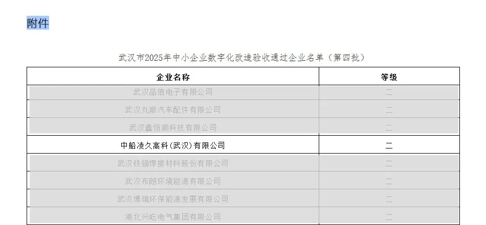 近日,依據《武漢市中小企業數字化轉型試點城市實施方案》相關要求,武漢市經濟和信息化局發布了武漢市2025年中小企業數字化改造驗收通過企業名單(第四批)。凌久高科入選名單,成功獲得武漢市2025年中小企業數字化改造二級認證!