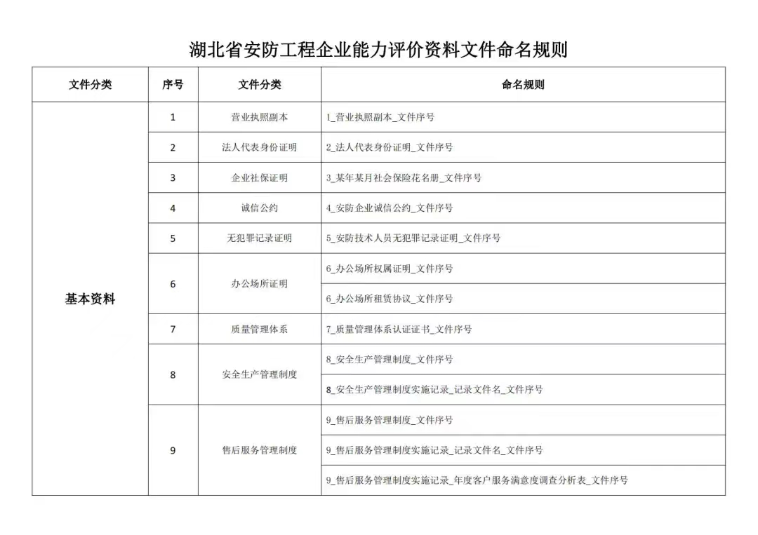 湖北省安防工程企業設計、施工、維護 能力評價初審須知(2020版)