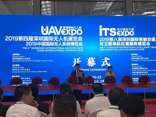 6月20日,2019第四屆深圳國際無人機展覽會、2019第八屆深圳國際智能交通與衛星導航位置服務展覽會于深圳會展中心同時盛大開幕,我會秘書長陳虎代表協會受邀出席開幕式。