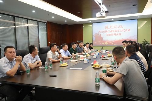 為慶祝中國人民解放軍建軍92周年,向武漢安防行業復轉軍人致敬,7月30日上午,武漢市安防協會復轉軍人代表團一同前往景網技術有限公司進行座談交流。協會秘書長陳虎,副會長景網技術有限公司董事長宋凱,湖北恒普科技有限公司董事長助理吳振宇及來自安防行業各會員單位的復轉軍人代表一同參加了會議。