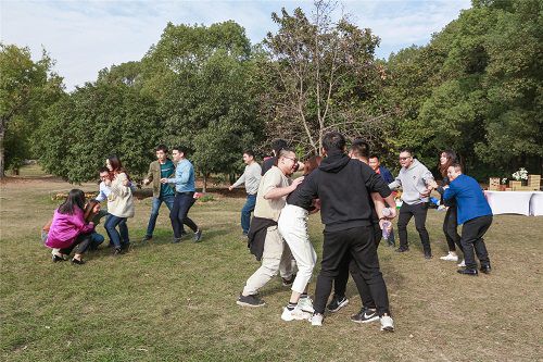 在現場,男女青年分成幾組參加游戲,充分體驗團結協作的力量。大家齊心協力共同闖關,完全放下拘束,展現自己的智慧與力量,互相贏得好感與信任。