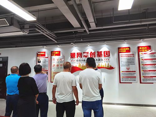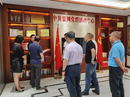 下午走訪隊伍來到景網(wǎng)技術(shù)有限公司,景網(wǎng)董事長宋凱帶領(lǐng)大家參觀了企業(yè)文化展示墻、中共景網(wǎng)黨群活動中心以及景網(wǎng)軍創(chuàng)基因展示墻。
